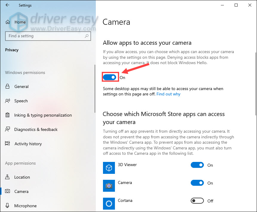 If your operating system or apps fail to access the camera, the MSI camera won’t work. In this case, you should allow the necessary permission in the Windows privacy settings.