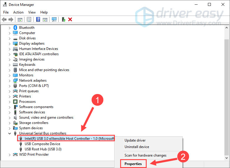 - Right-click the USB device and select Properties.