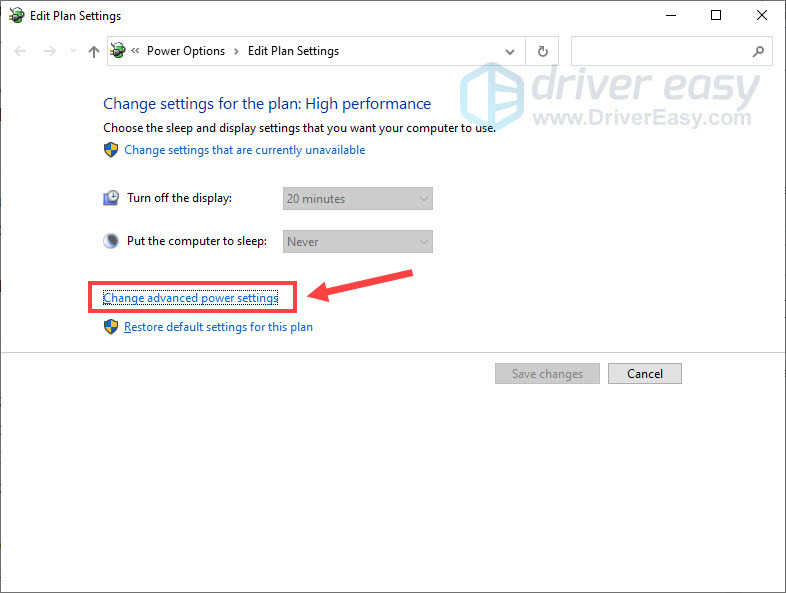 - Click Change advanced power settings.