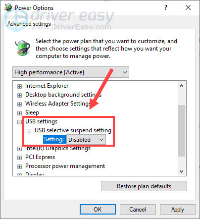 Turn off USB selective suspend