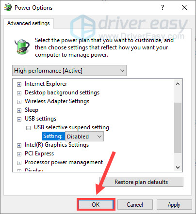 Repeat the steps to disable power management for each USB port and then test the issue. If the problem persists, check out below to turn off USB selective suspend as well.
