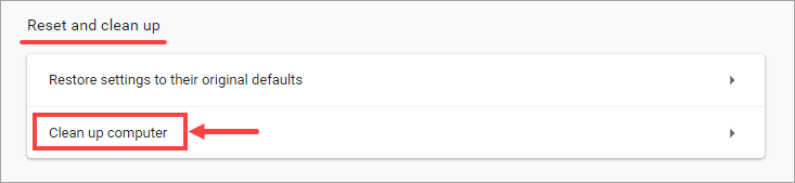 To rule out the possibility that some malware has prevented Chrome from saving your passwords, you can rely on Chrome’s built-in component to remove suspicious or unwanted programs (ones that may cause issues with the browser) for you.
