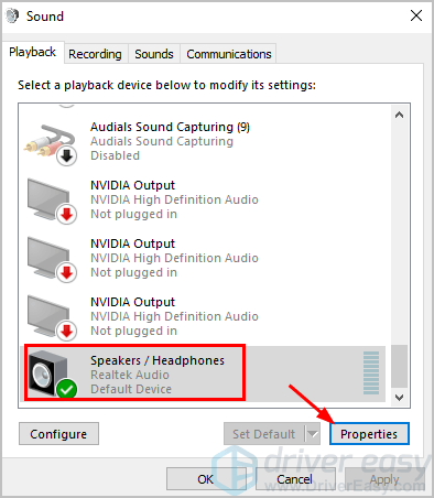 If your sound driver has somehow been removed, corrupted or become incompatible with Windows 10, you won’t be able to hear any sound from your speakers. (This quite often happens after an upgrade to Windows 10 from an earlier version of Windows.)