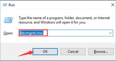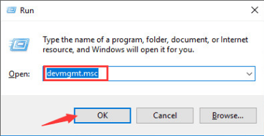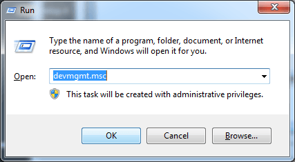 Type devmgmt.msc and click OK. This will start the Windows 10 Device Manager.