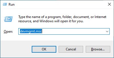 - On your keyboard, press Win+R (the Windows logo key and R key) at the same time to invoke the Run box. Type devmgmt.msc into the box and click OK to open Device Manager.