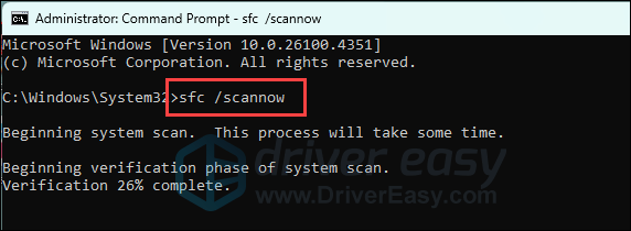 Windows will scan your system for corrupted files, and attempt to fix any it finds. The results will display in this window, so please leave it open until the operation is complete.