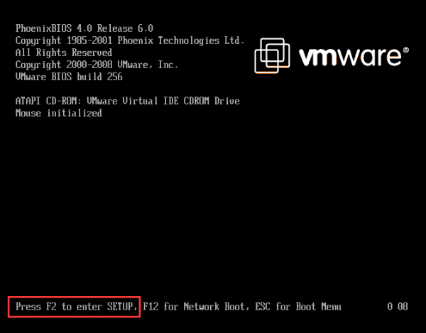 1) Restart your computer, and when you see the logo screen (example below), press the Setup key defined by your manufacturer. It should be listed on the logo screen. (Different manufacturers use different keys, but it’s usually F2, F1, Esc, F12, Delete or a combination of these keys.)