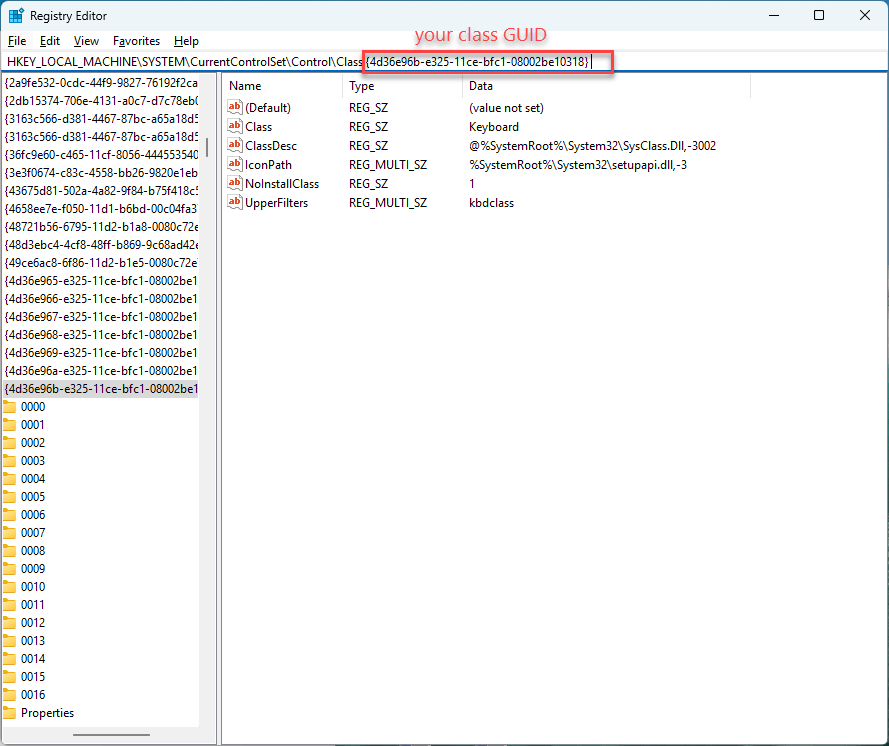 {4d36e96b-e325-11ce-bfc1-08002be10318}for keyboards).