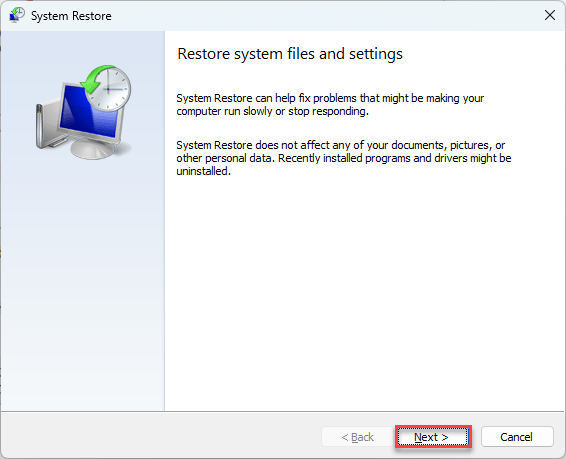 - System Restore doesn’t affect personal files, but it may uninstall programs and drivers installed after the chosen restore point.