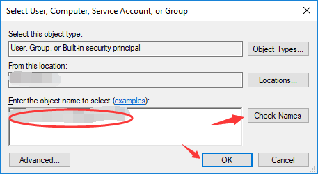 Check Names button. Windows will automatically check and complete the full object name. Then click on