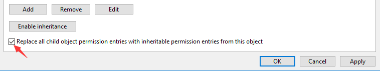 Replace all child object permission entries with inheritable permission entries from this object. After that, click on