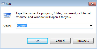 a) Press Win + R keys. Type “control” and hit OK.
