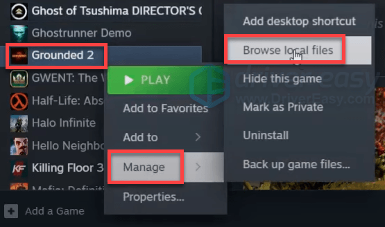 - Right-click on your game and select Manage > Browse local files.
