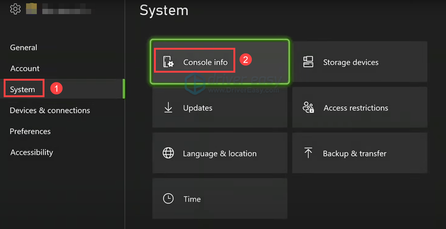 - Select System > Console info.