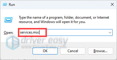 - Press Win + R, TYPE services.msc, and press Enter.