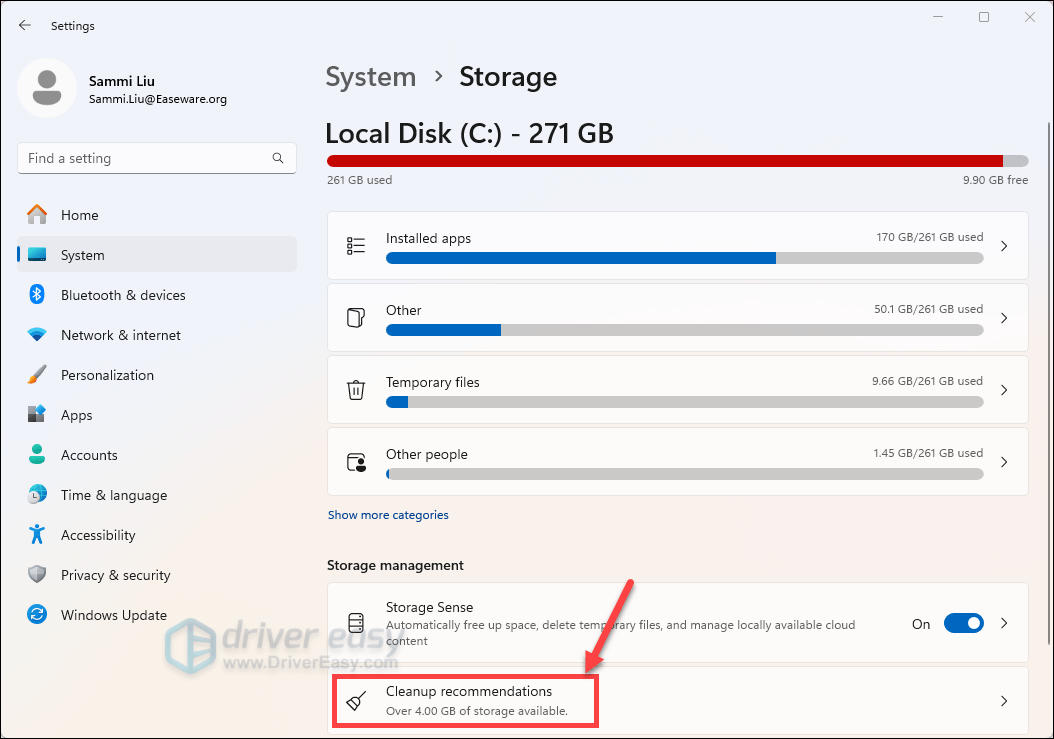 - Click Cleanup recommendations.