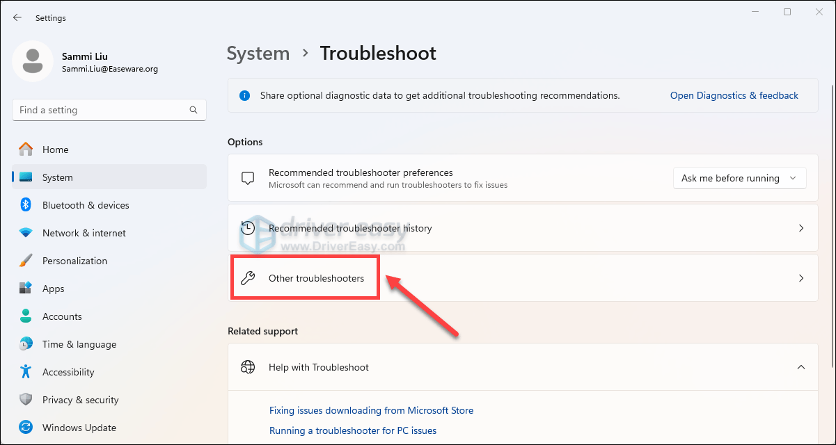 - Click Other troubleshooters.