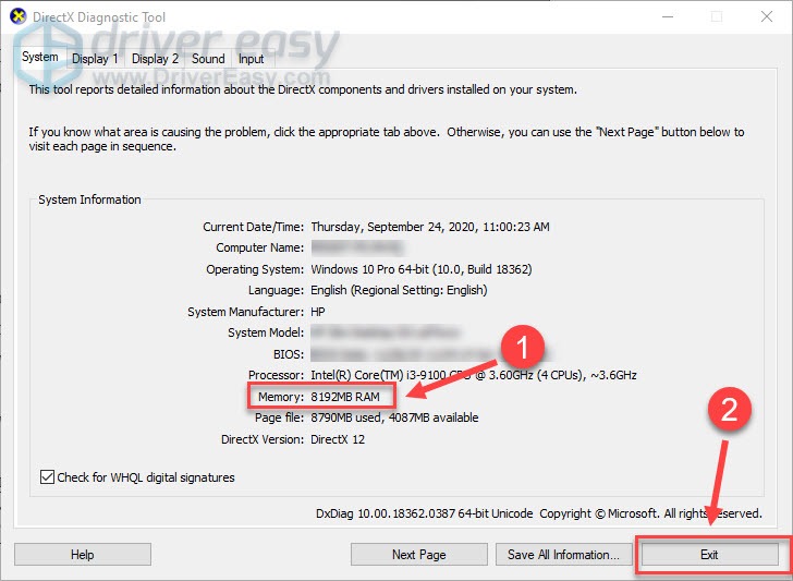 - Check your memory and click Exit.