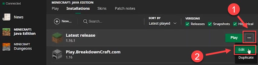- Open the Minecraft launcher. Then, click the Installations tab at the top.