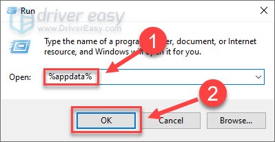 - On your keyboard, press the Windows logo key and R at the same time to invoke Run command. Then, type %appdata% in the field and click OK.