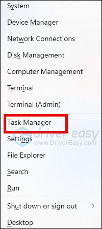 - On your keyboard, press the Windows key and X at the same time to select Task Manager.