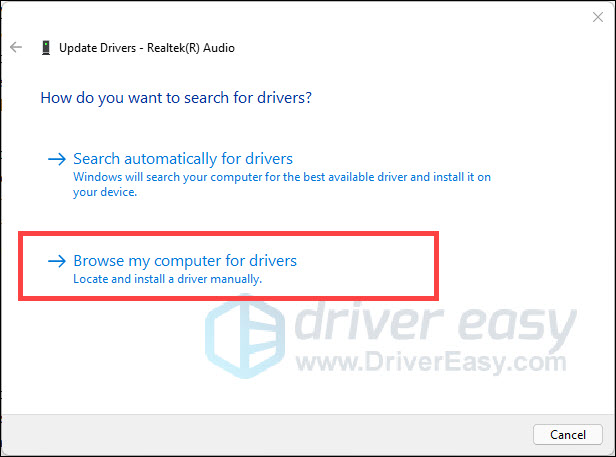 - Click Browse my computer for drivers.