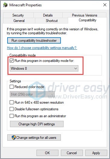 Games that were created for earlier versions of Windows will work in the recent version of Windows 10, but some may run poorly or not launch at all. Compatibility mode allows games to use settings from an earlier version of Windows, which can help you solve the Minecraft won’t launch issue.