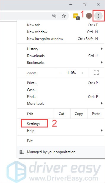 1) Launch Google Chrome, click the three dots button in the upper right corner, then click Settings.