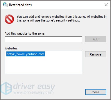 If you can’t find the website in the Restricted sites list, try the next method.