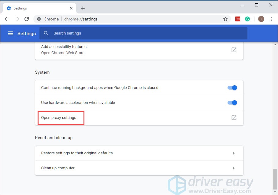 3) Under System, click Open proxy settings.
