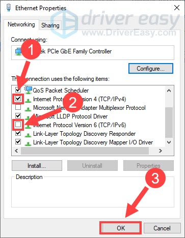 Some players reported that using an IPv6 protocol would trigger disconnection of Ubisoft Connect. To see if that’s the case with you, try disabling IPv6 as follows:
