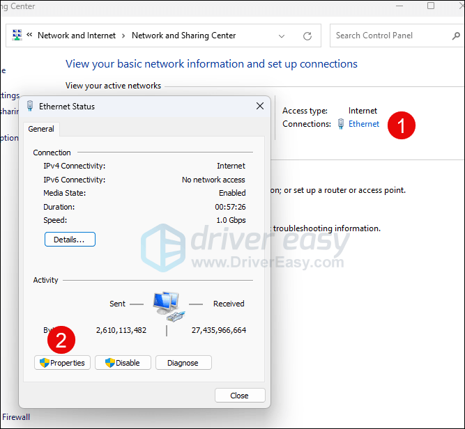- Click the Internet connection you’re using, then select Properties.