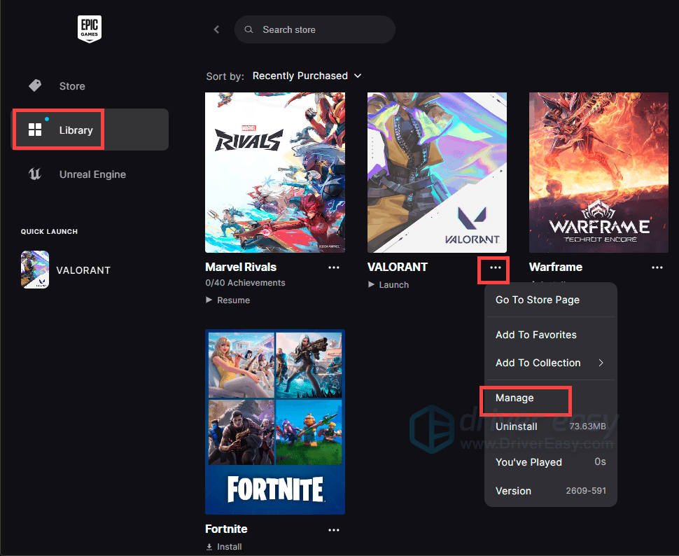 - Find the game in your Epic Games Library.