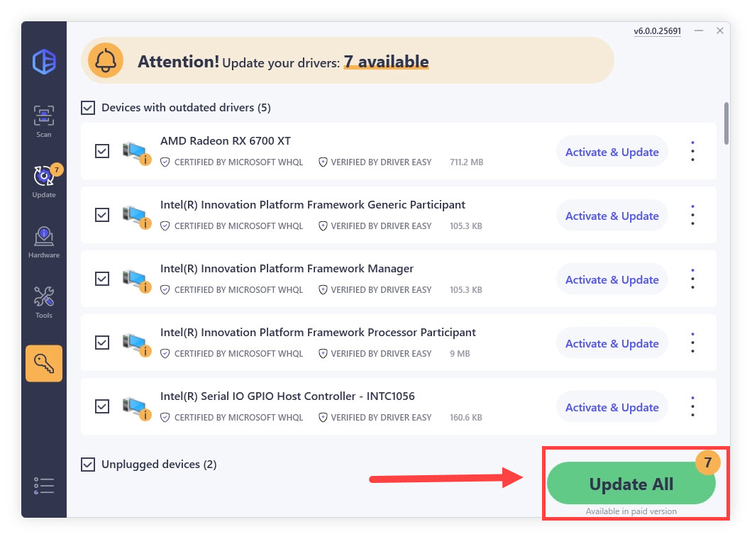 - Click Update All to automatically download and install the correct version of all the drivers that are missing or out of date on your system.