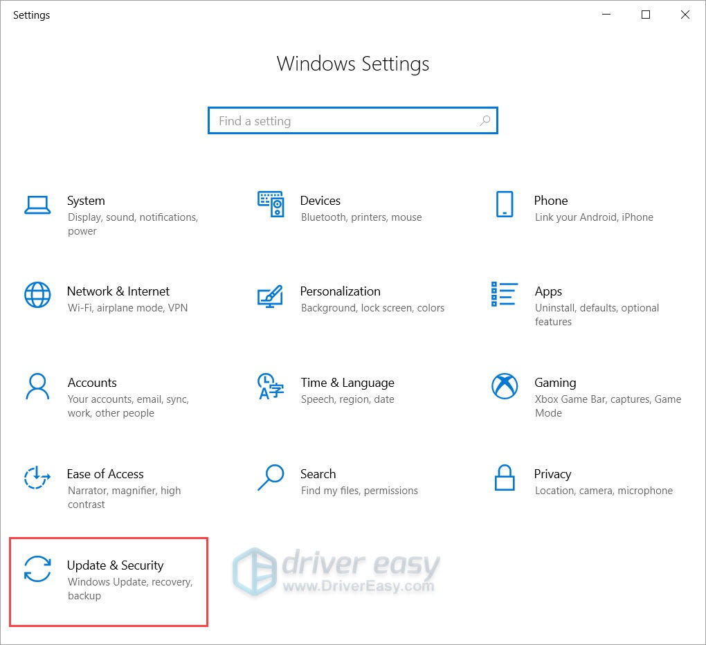 - On your keyboard, press the Windows logo key and I (the i key) at the same time to open the Windows Settings app. Click Update & Security.