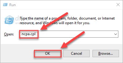 2) Type ncpa.cpl and click OK.