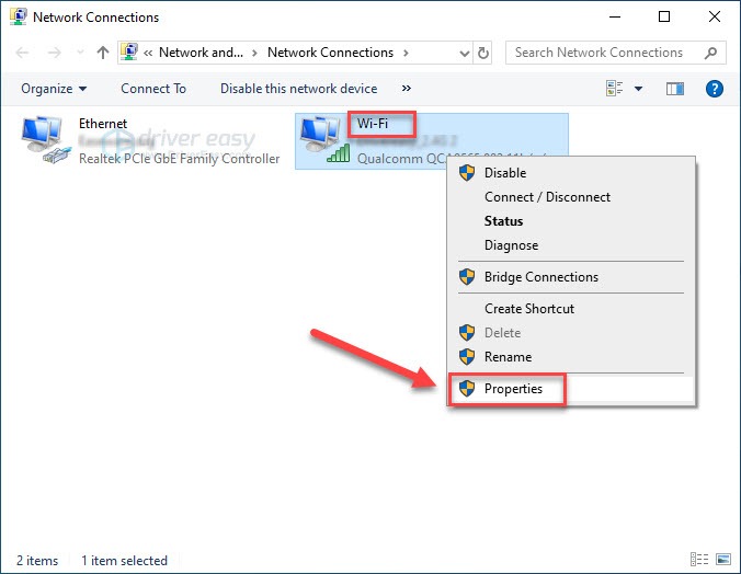 3) Right-click your Wireless/WiFi network adapter, then click Properties.