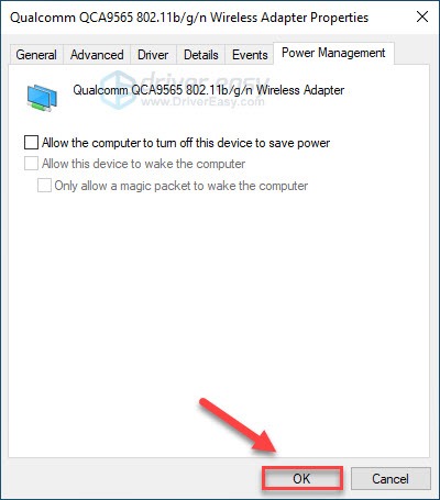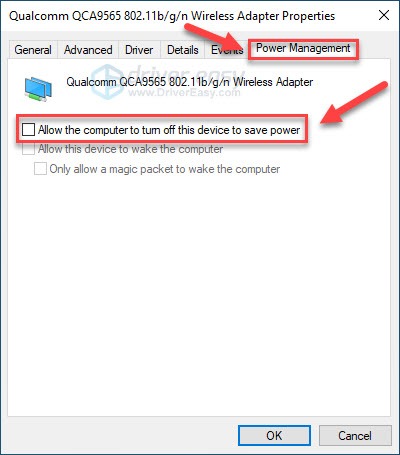 5) Click the Power Management tab, then make sure Allow the computer to turn off this device to save power is unchecked.