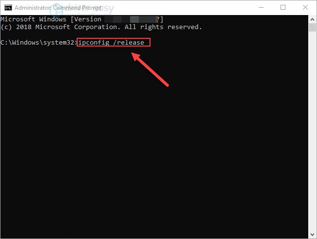 3) Type ipconfig /release, and then press the Enter key on your keyboard.