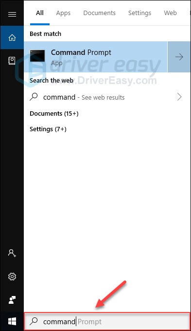 1) On your keyboard, press the Windows logo key and type command. Then, press the Enter, Shift and Ctrl keys at the same time to run Command Prompt as an administrator.