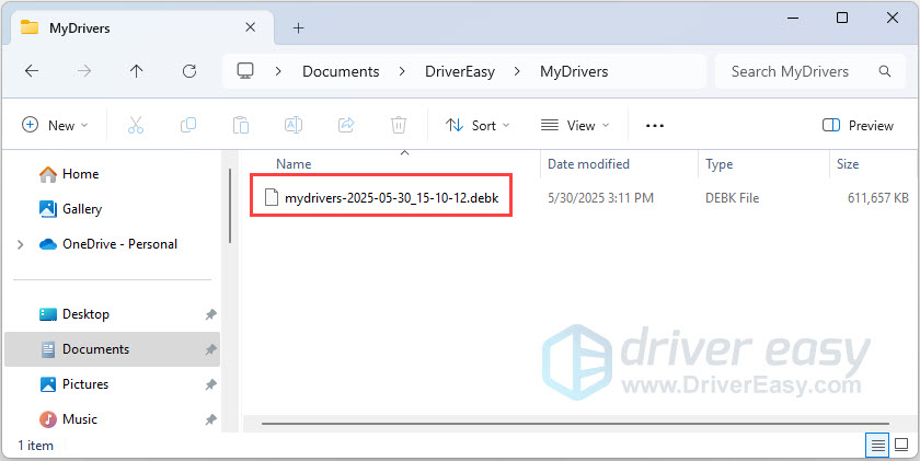 C:\Users\[your username]\Documents\DriverEasy\MyDrivers