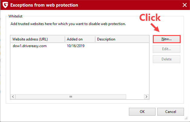 3) Click New…, then type dow1.drivereasy.com and click OK.