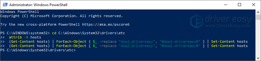If the commands run successfully, please open Driver Easy and try updating drivers again.
