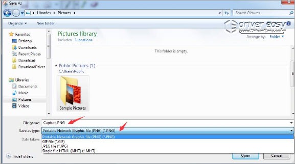 4) On your keyboard, press Ctrl+S (hold down Ctrl and press S ) to save the screenshot. You will need to set the name and the file type of the picture.