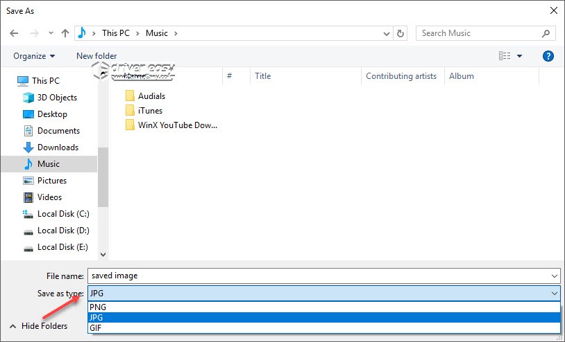 4) On your keyboard, press Ctrl+S (the Ctrl key and the S key) at the same time and choose the type you want to save the screenshot to the folder where you want to store the screenshot.