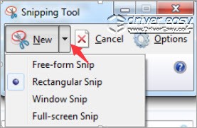 3) Click the arrow next to the New button and select the type of snips you wish to use from the dropdown list (see below screenshot).